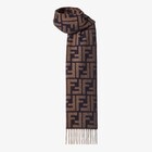 ブルーとブラウンで色落ち感を表現したFFジャカードが特徴の、ウールとカシミアを使用した長方形マフラー。両端はフリンジ仕上げ。