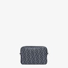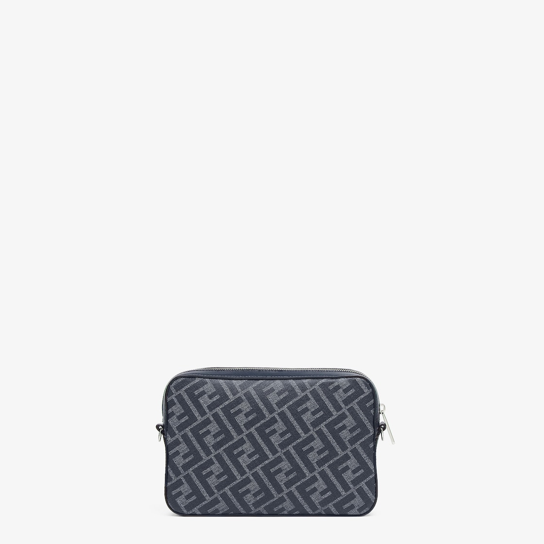 デニムブルーのFFキャンバスとダークブルーのレザーを組み合わせ、ダークブルーのレザーで斜めの切替えを施した、コンパクトなショルダーバッグ。内側にはダークブルーのレザーを使用。