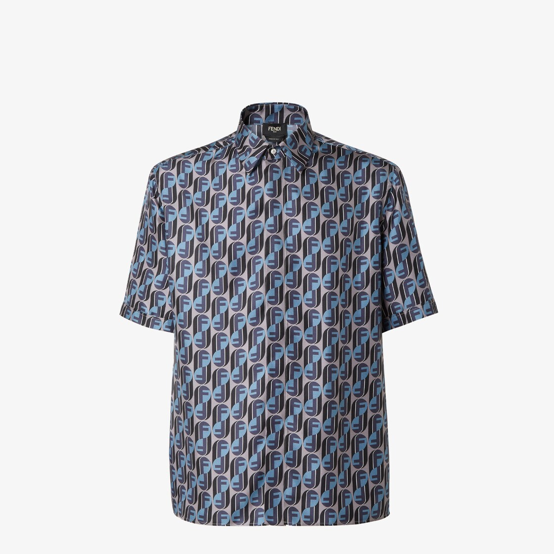 이탈리안 스타일 칼라와 쇼트 슬리브 디자인의 셔츠. 박시 핏. 컨실드 버튼 여밈. 블루, 블랙, 도브 그레이 컬러의 올오버 펜디니티 프린트를 더한 실크 소재.