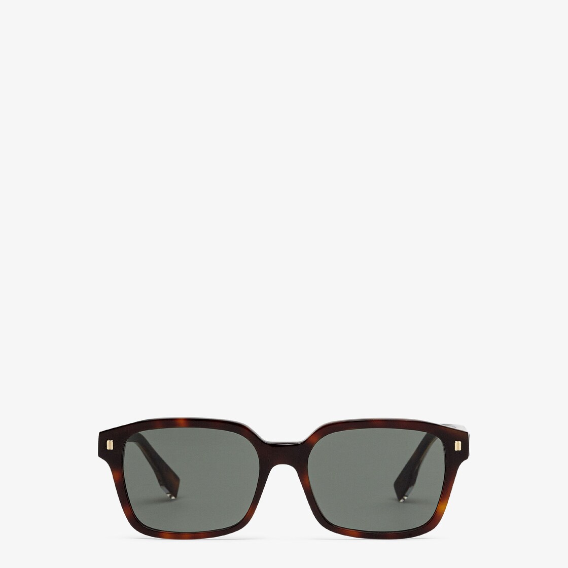 투명 브라운 아세테이트의 스퀘어 프레임과 앞면의 익스클루시브 메탈 페퀸 리벳. FF 로고 브랜딩의 팔리듐 마감 메탈 코어를 더한 템플. 블루 컬러 렌즈.