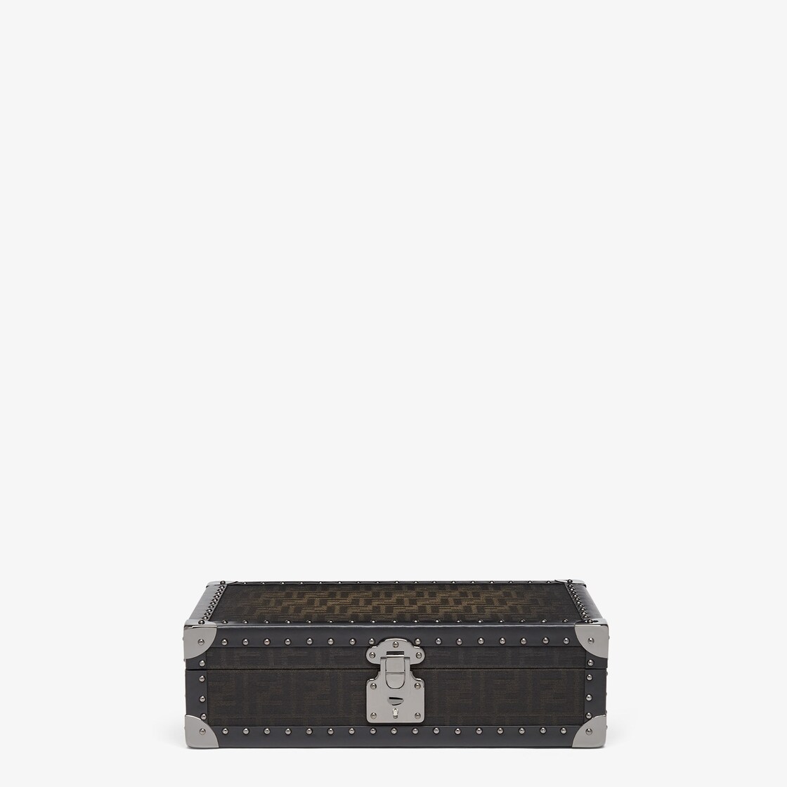 트래블 시계 케이스. 에클리시 FF 자카드 소재, 엣지 핸드 쉐이드. 스냅 클래스프 및 패드락.