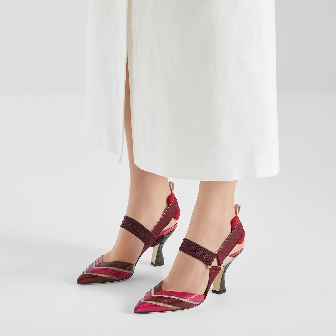 푸시아 및 버건디 해그피쉬와 메쉬 하이힐 슬링백