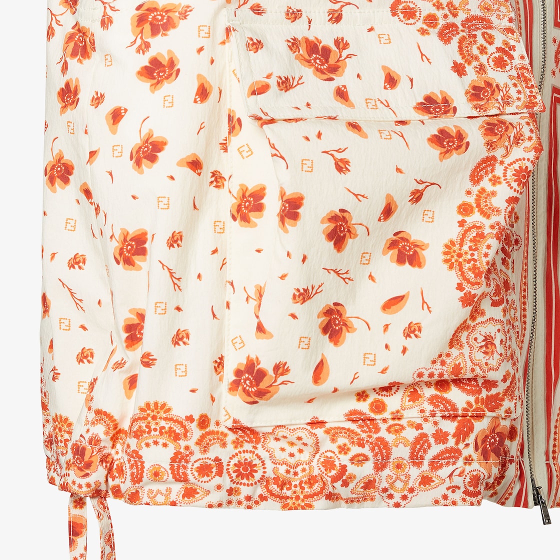 테크니컬 코튼 소재 베스트. 화이트와 핑크 컬러의 올오버 코랄 반다나 모티프 프린트, 매칭 FF 디테일.