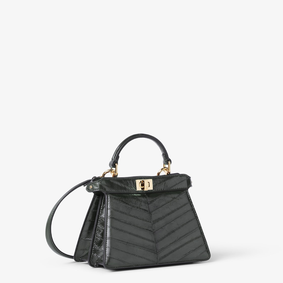 프리미엄 포레스트 그린 컬러 해그피쉬 가죽 소재. 글로시 피니시, 셰브론 모티프를 이루는 인레이. 가죽 본연의 특징을 가지고 있어 각 백은 유일무이한 아이템으로 완성됩니다.