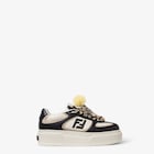 펜디 매치 레이스업 스니커즈. 라이트 핑크 컬러 가죽 소재. 화이트와 시에나 브라운 컬러 디테일. 옆면에 대조적인 가죽 소재 FF 아플리케 및 화이트, 핑크, 시에나 브라운 컬러 하이킹 레이스. 러버 플랫폼 솔, 뒷면의 오버사이즈 엠보싱 펜디 레터링. 오른발 슈즈 텅의 메탈 링에 부착된 참은 브레이디드 코드 소재의 작은 인형으로 대조적인 밍크 디테일과 골드 컬러 메탈 FF 브레이슬릿을 더했습니다. 왼발 슈즈에는 대조적인 밍크 더블 폼폼이 달린 브레이디드 코드 스쿠비두, 메탈 FF 비즈, 프린트 페퀸 모티프 및 로고의 태그로 마무리.