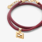 FF 참을 더한 더블 랩 브레이슬릿. 조절 가능한 클로저, 클립 및 스몰 로고 태그. 버건디 컬러의 튜브형 나파 가죽 소재. 골드 피니시 메탈 디테일.