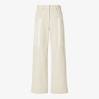 파이브 포켓 팬츠. 라지 패치, 앞면의 카고 포켓. 허리의 벨트 루프. 컨실드 버튼과 지퍼 잠금. 베이지 컬러 코튼 드릴 데님 소재. 카고 포켓의 톤온톤 자카드 페퀸 모티프. FF 셀러리아 디테일의 화이트 컬러 가죽 뒷면 스트랩. 골드 피니시 메탈 리벳 장식.