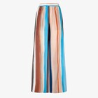 플로잉 파자마 팬츠. 엘라스틱 웨이스트밴드 및 사이드 포켓. 실크 하보타이 소재. 라이트 핑크, 브라운, 블루 컬러의 올오버 베네치아 스트라이프 모티프 프린트.