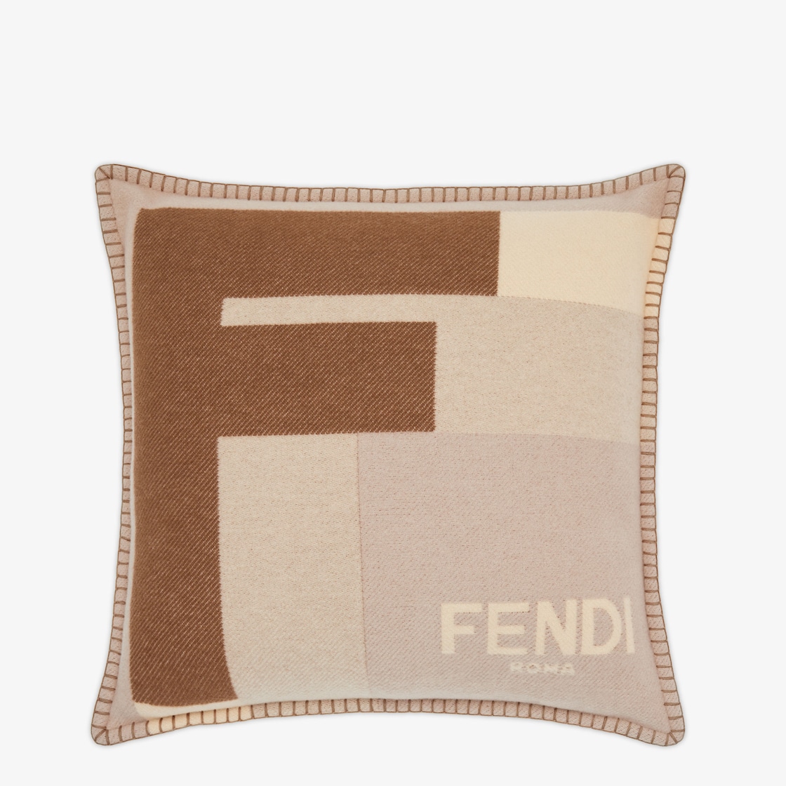 스퀘어 FF 쿠션. 은은한 도브 그레이와 베이지 컬러의 울과 캐시미어 자카드 트윌 소재. 2024 봄/여름 패션쇼를 위해 업데이트된 펜디 아카이브 컬렉션에서 영감을 받은 아이템으로, 아이코닉한 대형 브라운 F와 기하학적인 형태의 흥미로운 조합이 특징입니다. 블랭킷 스티치 엣지로 펜디 셀러리아의 장인정신을 떠올리게 하는 장인 기술을 강조했습니다. 고급스러운 소재와 세련된 디자인으로 장식에 고급스러움과 세련미를 더해줍니다.