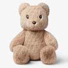 دمية كبيرة من المنك (mink) باللون البيج مع طبعة شعار FF عليها بالكامل بدرجات مختلفة من اللون نفسه.