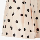 سروال قصير واسع عند الأطراف بطيّة مزدوجة في الجهة الأمامية.جيوب جانبية وأطراف مثنية.إغلاق بسحاب ومشبك مخفيين.مصنوع من التفتا (taffeta) باللون الوردي ومطبوع بالكامل بعلامة Falena Dots بلون متباين.