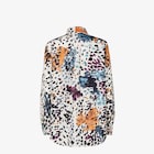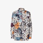 قميص كلاسيكي بمقاس واسع.أكمام طويلة بأكتاف منخفضة مع أطراف أكمام قميص.طرف دائري بتصميم مبتكر.إغلاق بأزرار مخفية.مصنوع من تفتا (taffeta) الحرير باللون الأبيض مع طبعة Falena عليه بالكامل بدرجات اللونين الأسود والبرتقالي.
