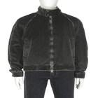 بلوزون برقبة عالية وأكمام راجلان (raglan) طويلة.جيوب مخفية مائلة على الجوانب.إغلاق في الجهة الأمامية بشريط سحاب مزدوج.مصنوع من مخمل القطن ومعالج بطريقة الغسل الحجري لإضفاء تأثير بلون أسود فاتح جداً.الجهة الداخلية مزينة بطبعة من الدنيم مع علامة FF.زينة معدنية بلمسة نهائية من البلاديوم (palladium).