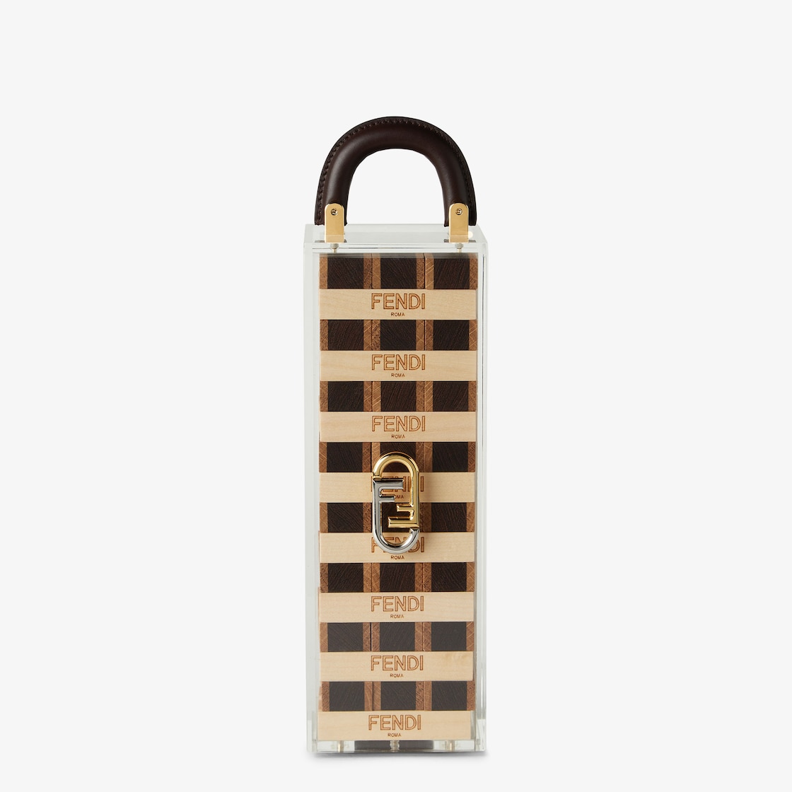 تُعد ألعاب الطاولة جزءًا ملهمًا في المجموعة الجديدة من اللوازم التي لا غنى عنها في الحياة اليومية، بهدف خلق أجواء مريحة ومسلية لقضاء عطلة تكتمل متعتها مع العائلة. تجمع الألعاب بين المرح وأناقة التصميم، فقد صًمّمت جميع الألعاب بحيث يسهل نقلها وتخزينها كقطعة ديكورية تُضفي لمسة من البهجة على المكان. صندوق من البلكسي جلاس مزيّن بتفاصيل من الجلد ولمسات مطلية باللون الذهبي وشعار Fendi O’Lock في تعبير أيقوني عن هوية دار الأزياء.