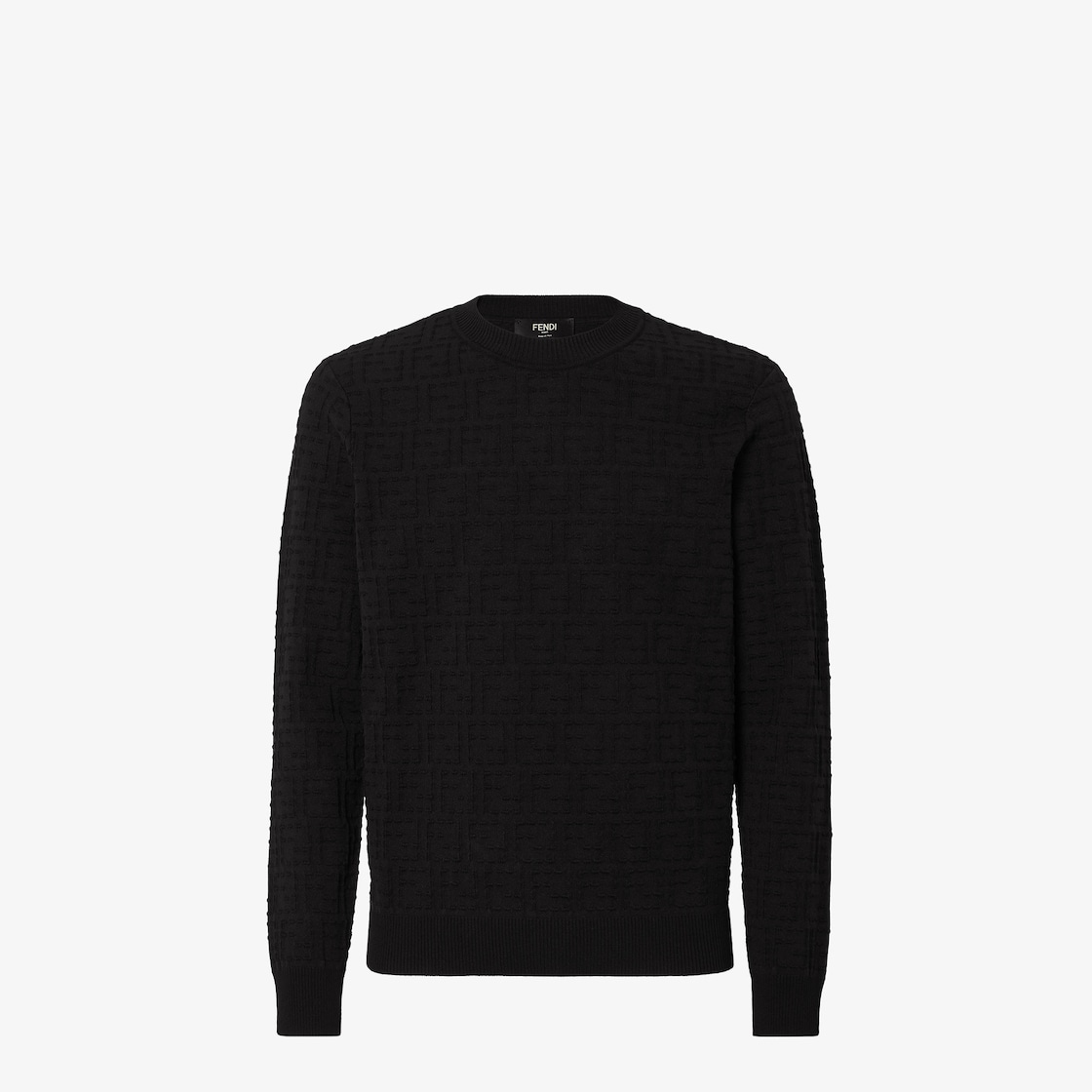 كنزة مقاس عادي برقبة مدوّرة وأكمام طويلة. مصنوعة من نسيج القطن باللون الأسود. تتميز بدرزات FF Selleria عليها بالكامل بلون متناسق. مزيّنة بأطراف مضلّعة.