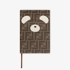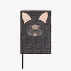 Fendi Best Friends Forever Notebook with cover made of iconic black FF fabric, decorated with a black leather inlay and pink details depicting a dog’s head. Completed by a tone-on-tone ribbon bookmark.