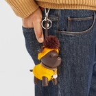 Ito bag charm made of brown leather. The dog-shaped charm, with a brown leather strap and logo clip, is inspired by Creative Director Silvia Venturini Fendi’s dog Ito. Embellished with orange knit beanie and pullover and leather collar with logo dog tag. Palladium-finish metalware.