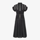 Midi shirt dress with short cocoon sleeves, classic collar with single-button fastening and cut-out motif on the front. Fitted at the waist. Side zip fastening and half zip at the front waist. Made of black faille with vertical inserts in see-through micro mesh. Embellished with openwork details on the vertical front opening. Matching black slip, removable with press stud.