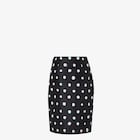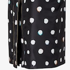 Midi pencil skirt fastened by a two parallel metal zips on the front. Made in a black taffeta printed all-over with a contrasting colour Falena Dots motif. Palladium-finish metalware.