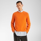 Long-sleeved crew-neck jumper. Regular-fit style. Ribbed edges. Made of orange cashmere yarn, crafted in a knit that sculpts the raglan cut and underarm. Embellished with an embossed micro FF detail at the centre of the chest.
