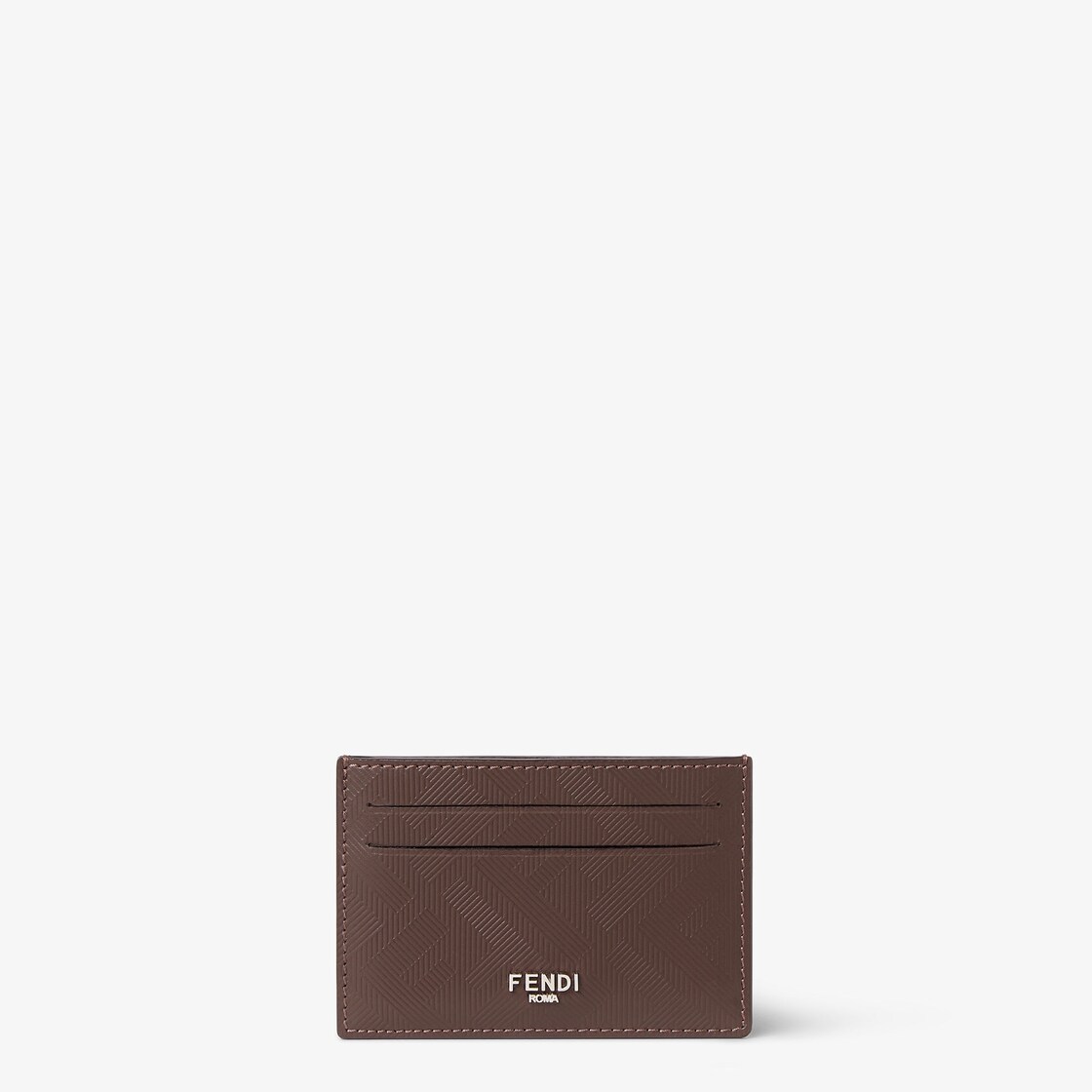 Card holder with four slots and flat central pocket. Made of brown Fendi Shadow leather. Palladium-finish metalware.