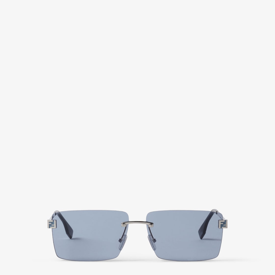 Rectangular, ultra-lightweight Fendi Sky glasses featuring light blue lenses and metal end pieces with 3D FF customisation. Slim palladium coloured metal temples with black acetate tips. Adjustable nose pads.
