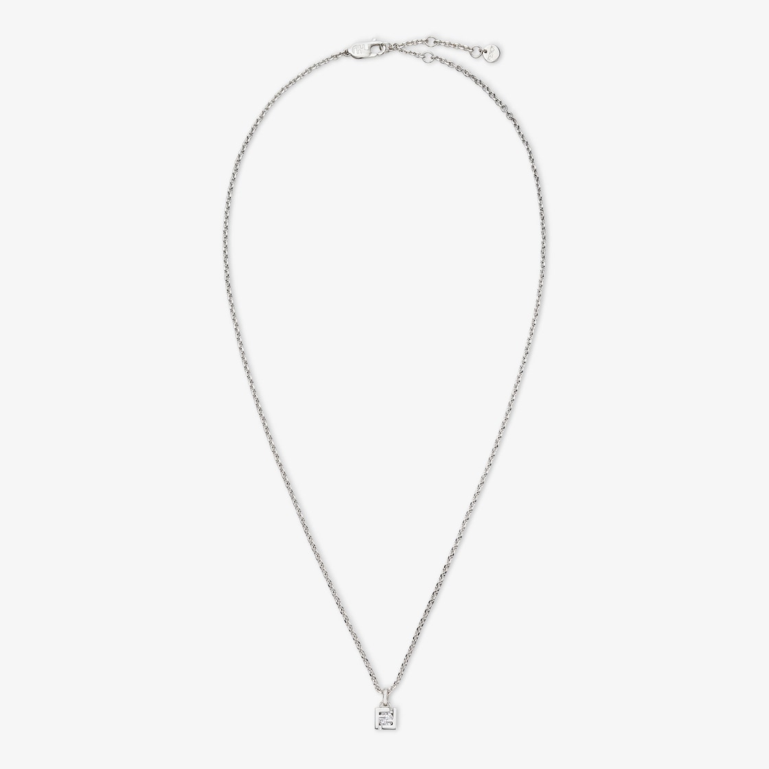 Fine chain-link necklace with FF pendant. Decorated with white crystal set in the double F. Made of palladium-finish metal.