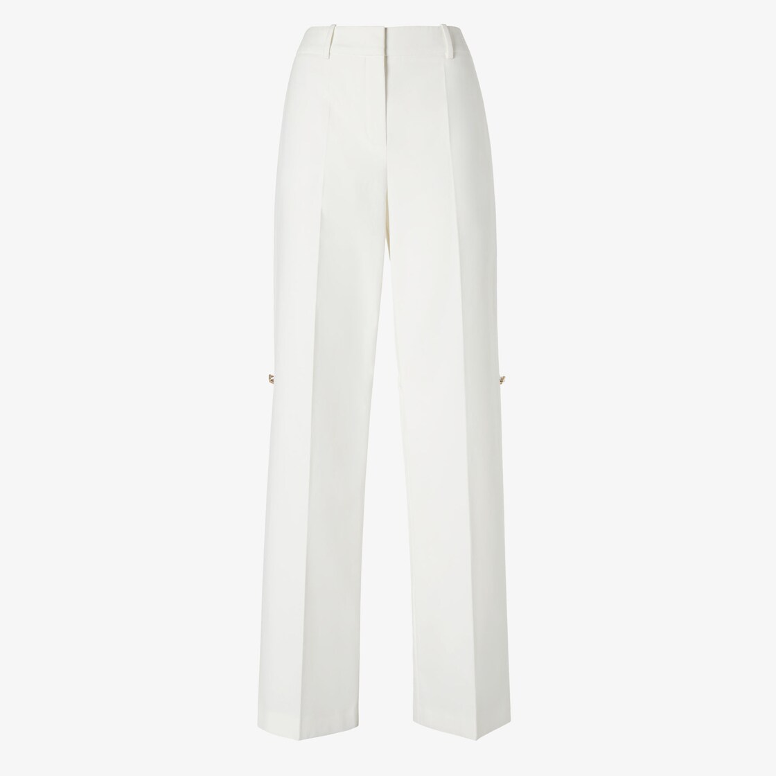 Straight-leg trousers with trouser pleat. Belt loops at the waist and concealed zip fastening. Made of white technical cotton canvas. Adjustable drawstrings on the back of the knees to modify the fit and define the volume of the silhouette.