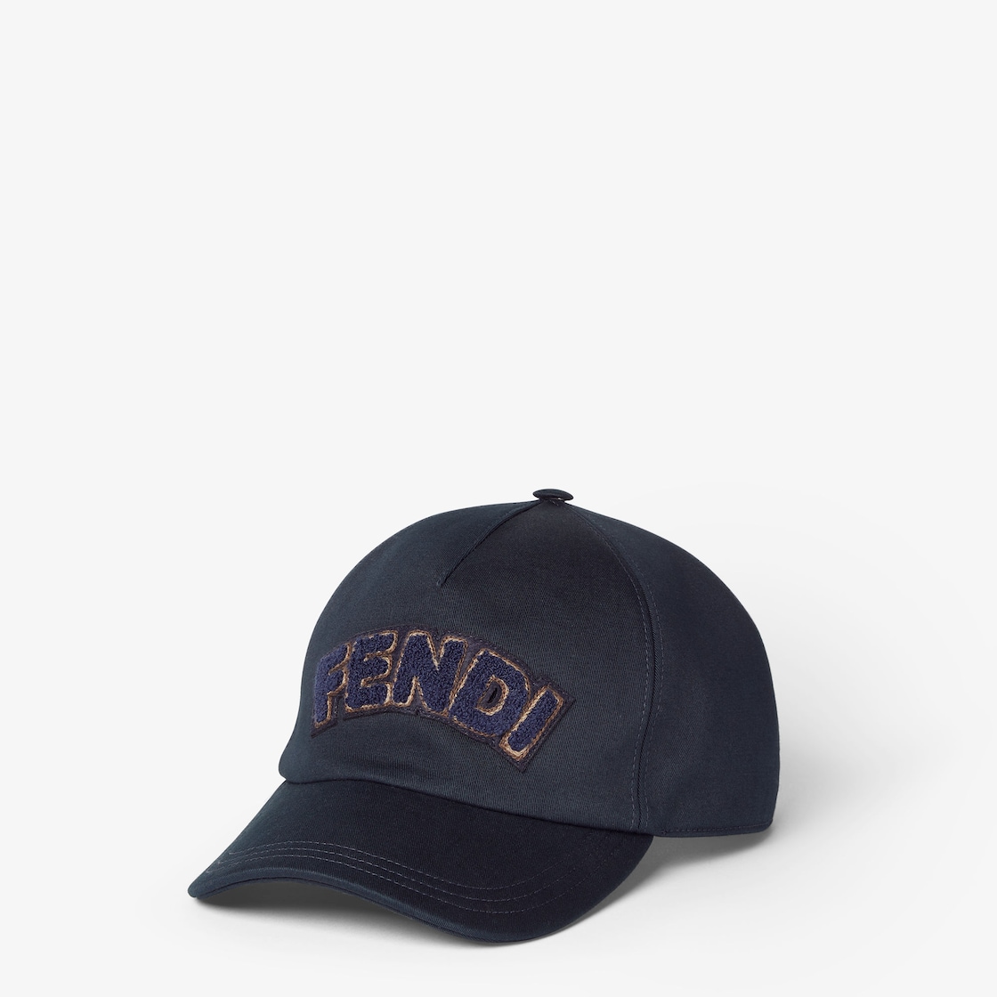 Baseball cap with semi-stiff peak made entirely of blue cotton canvas. Customised with Fendi patch in tone-on-tone terry on the front.