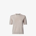 Fitted short-sleeved crew-neck jumper. Made of grey wool and silk yarn with the iconic all-over jacquard FF motif. Finished with ribbed edges.