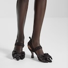 Streamlined and feminine Colibrì slingbacks with elasticated straps that wrap around the foot. The sole is embellished with rubber inserts. Made of black mesh with tone-on-tone satin maxi bow covered in matching sequins. The padded cushion and hiking shoe tab add a sporty touch. Front elastic ribbon in gathered satin.