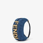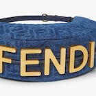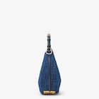 Confección en mezclilla FF en tonos azules con textura flocada.Decorado con la inscripción de letras FENDI de metal con acabado dorado vintage en el fondo, visible cuando se lleva el bolso debajo del brazo.