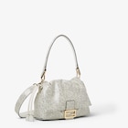 Confección en piel lujosa de elaphe color blanco, con motivo Peppered Falena estampado en tonos negros.Decorada con broche FF.