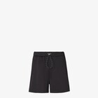 Pantalón bermuda con cintura elástica con cordón ajustable. Bolsillos ribeteados verticales a los lados y bolsillo izquierdo con solapa en la parte trasera. Confección en algodón técnico color negro. Personalizado con aplicación de malla negra con detalle FF bordado a tono en el bajo del lado izquierdo.