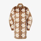 Abrigo midi con cuello de camisa.Mangas amplias y bolsillos laterales.Cierre con botones ocultos.Confeccionado en visón rasurado de color original, con detalles de crochet microperforado.Motivo floral all over de flores blancas y detalle amarillo en el centro.Interior de napa.