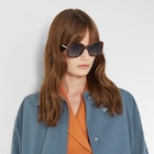 Lentes de sol Fendigraphy modelo mariposa oversize, con frontal de acetato habana.Patillas tubulares de metal con acabado dorado, adornadas con letras Fendi Roma tridimensional y extremos de acetato tono sobre tono.Lentes ahumadas color verde oscuro.