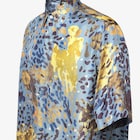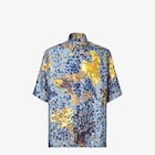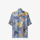 Camisa de manga corta oversize.Cuello semi italiano y bajo recto.Cierre con botones ocultos.Confección en seda con estampado all over Falena en tonos azul azafata y amarillo.