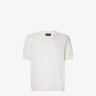 Suéter de cuello redondo y manga corta. Corte regular y bordes acanalados. Confección en hilo de algodón y cachemira azul marino. Personalizada con logo FF Selleria pequeño bordado a tono en el pecho.