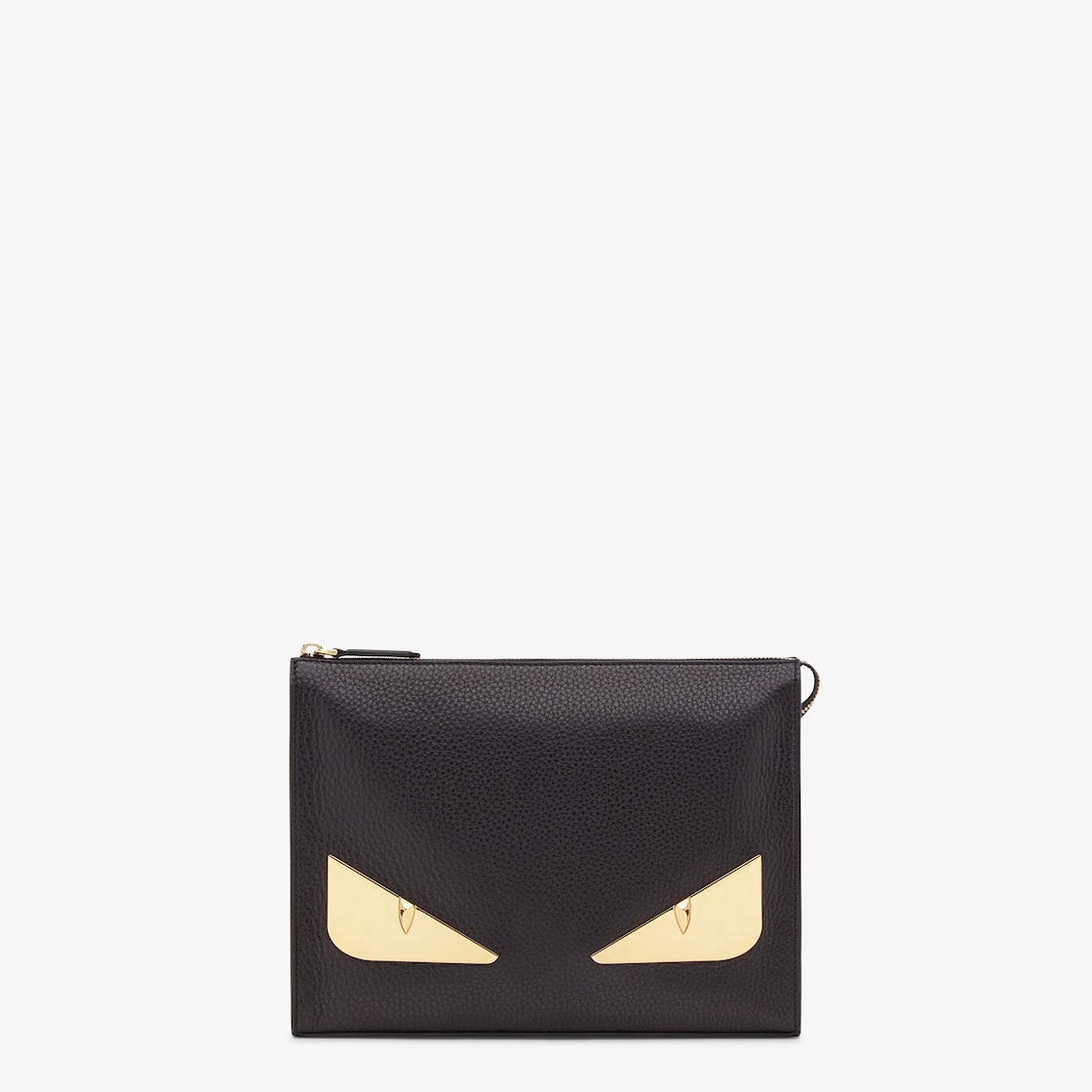 Cartera con cierre de cremallera. Bolsillo interior plano. Confección en piel negra. Aplicaciones de metal con la forma de los ojos Bag Bugs. Accesorios metálicos con acabado dorado.