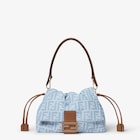 Confeccionada con mezclilla FF de algodón orgánico en un lavado azul claro, decorada con un broche FF con inserto de piel café sellier.