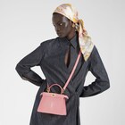 Fular cuadrado confeccionado en seda. Personalizado con estampado Moonlight Echoes en tonos rosa y amarillo, que reinterpreta motivos inspirados en los mosaicos romanos y el Art Déco con columnas, lunas y esferas suspendidas: un homenaje al legado de Fendi y al diálogo entre historia y modernidad. El diseño está personalizado con margen motivo Fendi Optical en los mismos tonos. Bordes enrollados a mano.