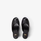 Sandalias de punta abierta de corte wrappy, con tacón de cuña caracterizado por el icónico motivo Arco perfilado. Confección en piel de mixino brillante color negro. Detalle de metal con acabado dorado en el talón y decorado con el logo Fendi grabado.