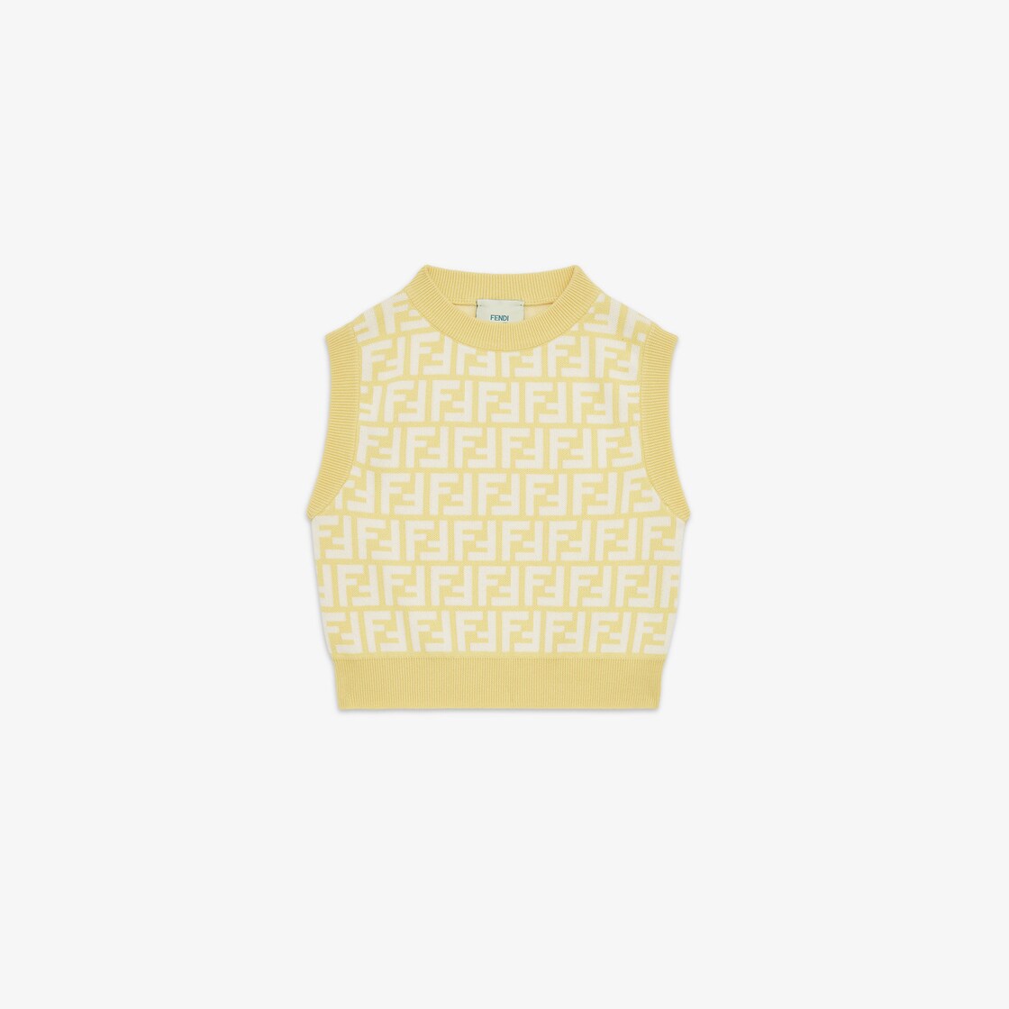 Top júnior corto en punto de algodón con logotipo FF multicolor sublimado en tonos blanco y amarillo.