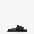 Sandals with wide band and adjustable hook-and-loop fastener. Made of black FF Jacquard nylon and technical webbing with tone-on-tone logo and embellished with leather piping. Tone-on-tone leather lining, insole and details. Contoured, non-slip rubber soles.