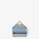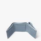 Medium FF Diamonds tri-fold wallet, geometric flap and diagonal FF logo. Divided into six card slots, a banknote compartment and a coin pocket with a press stud button. Made of mercury blue full-grain calfskin and light blue smooth leather. Gold-finish metalware.
