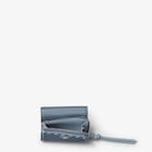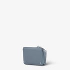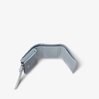 Compact Peekaboo tri-fold wallet, with a large internal compartment for banknotes, a card holder slot and an external coin purse with a zip and long knotted zip pull. Made of mercury blue Cuoio Romano leather with 82 hand-sewn, contrasting topstitches, an emblem of the iconic Selleria stitching handed down through generations of Fendi artisans since 1925. Palladium-finish metalware and metal FENDI logo.