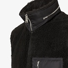 Gilet with high collar and zip pocket on the chest. Vertical pockets and strap adjusters on the back with metal FF buckles. Zip fastening. Made of black curly faux fur. Embellished with black nylon details and metal FF ring on the front. Palladium-finish metalware.
