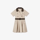 Beige gabardine junior dress with front button fastening. Collar and belt in jacquard fabric with tobacco-colour FF logo.