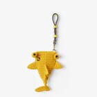 Shark-shaped coin holder with three-dimensional effect eyes and fins. Made of yellow and white cotton crochet with contrasting FF lettering embroidered in yarn. Zip opening completed by a metallic FF element and tone-on-tone leather pull tab. Gold-finish metalware.