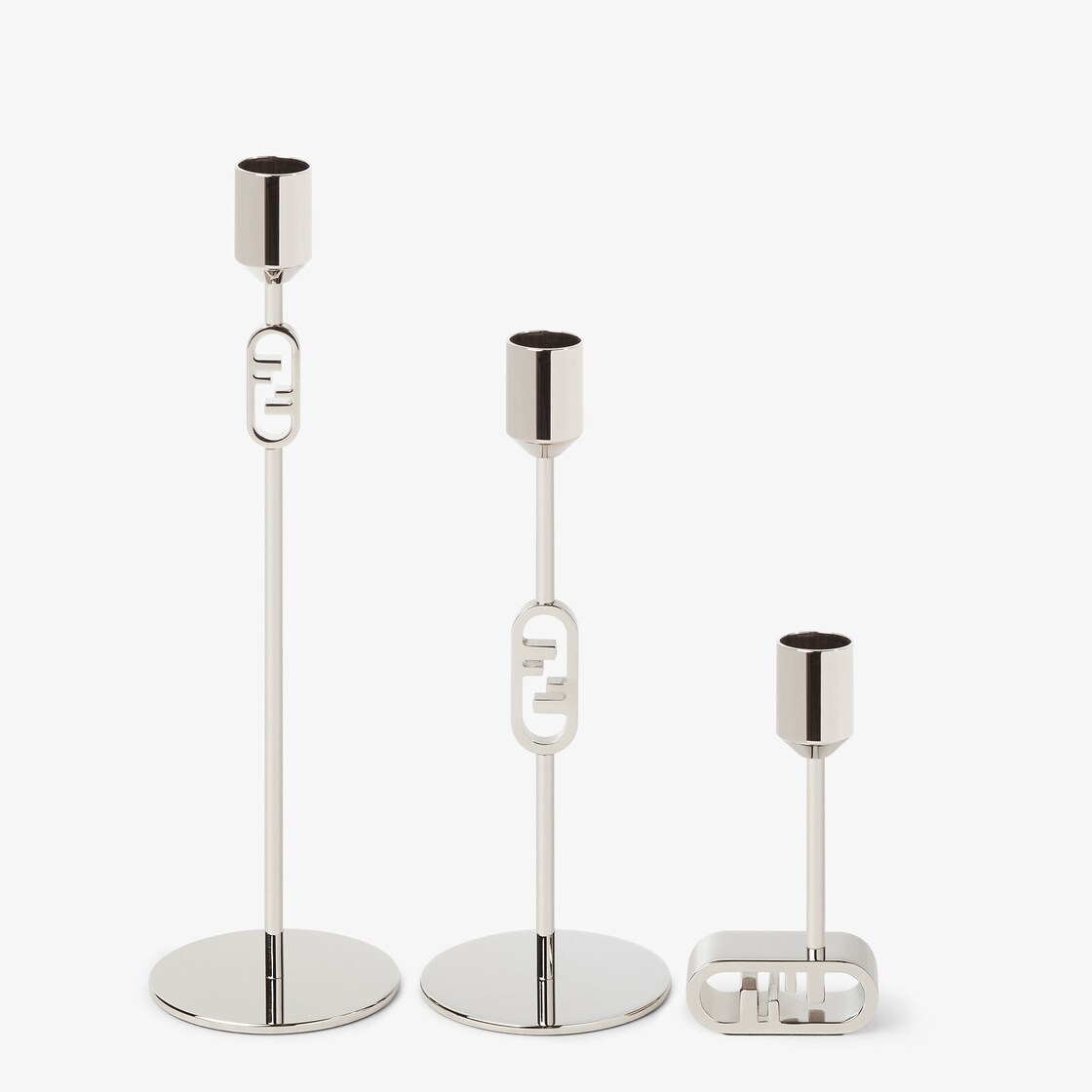 Made of galvanised metal, the Fendi Casa candle holder set embodies the essence of refined and timeless elegance. The iconic Fendi O’Lock logo is the unifying element that runs through a range of accessories perfectly in tune with the style of the fashion brand. The palladium-coloured finish adds a unique and sophisticated touch, confirming the careful attention to detail and refinement of the design.